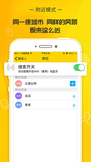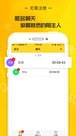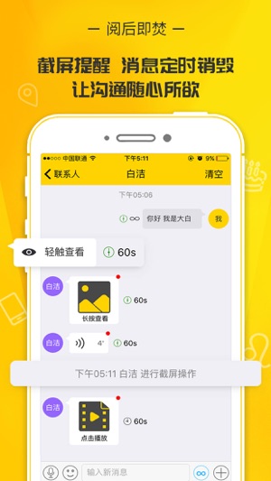 沙话六大功能 1. 无需注册 无需你的手机、email等任何联系方式,确保你的私人信息不会被透漏; 2. 网络中的平行关系 因为无需注册没有身份认证,在网络世界你可以对于不同的人扮演不同的身份,甚至相同的人你也可以用不同的身份与他对话。举个例子,如果你是A,你有B和C两个朋友。当和B聊天的时候,你可以用A或者其它的身份与之交流;当和C聊天的时候,你可以用A或者其它的身份与之交流。当B和C聊天的时候,他们不会知道有一个共同的好友A,因为A没有与之对应的身份信息(如手机号、email等); 3. 无中央存储器 发送的信息只留存于你和对方的手机中,第三方无法获得; 4. 阅后即焚 真正的焚毁信息,不…