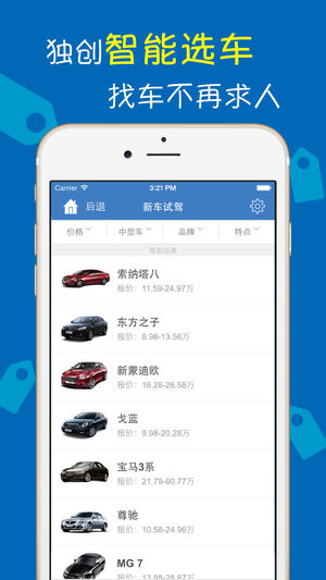 购买新车满城跑,现在终于有神器了! 我们为您提供: • 各大品牌汽车最新报价查询 • 获取各大汽车厂商第一手新闻 • 智能选车,为您个性化推荐爱车 • 汽车行情实时更新,买车必备 • 免费试驾,手机预约到店试驾 如果您对本应用有任何建议或意见欢迎通过应用内的“意见反馈”通道与我们沟通。