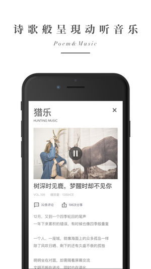 余音以极简优美的设计体验,推荐动听的音乐,旨在带给你干净、纯粹、天籁般的愉悦享受。它就像诗歌一样简洁优美,脱俗随性,静心于尘,带你神游到远方。 以最优雅的方式去聆听和赞叹 - 乐文:一位音乐人,一首主推歌曲,一个关于他和音乐的故事; - 猎乐:万里挑一的音乐汇成合辑,超越各种榜单,保证让你惊叹; - 单曲:编辑特推曲目,一纸你未曾听过的故事,牵你听一首朴实无华的歌; - 乐人:这些优秀的独立音乐人,有值得你用心聆听的好音乐; - 电台:多种音乐风格标签,随心选择,转角遇见好音乐; 会员服务自动续订及协议说明: - 余音提供每月、每季度、每年的自动订阅选项:月度会员[¥10/月],季度会员…