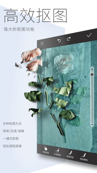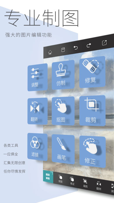 PhotoWeaver是一款功能强大的专业图片编辑应用,独家图层设计,强悍的抠图工具和仿制图章工具,如同随身携带了photoshop。功能强大,操作简便。 开放性的设计,让你可以更充分的展示你的创意。唯一限制你的,只有你的想象力。 特色功能 1.图层管理 ·轻松添加图片和文本至图层列表 ·图层可自由添加删除,放大缩小,切换位置,调整透明度 ·多个图层完美融合,天马行空的创意都可以实现 2.智能抠图 ·拍照时,使用魔棒可以动态去除背景,效果非常奇妙 ·智能抠图与精准抠图相结合,加上像素级的擦除和修复,可以完美抠出图片中想要的部分 ·放大图片 + 画笔大小调节 + 放大镜提示 = 专业级操作体验 3.仿制图章 ·选中一个锚点,便可将其完美的复制 ·去除水印,复制图案 4.历史记录 ·所有操作都可以回退,前进,反复修改不用担心 ·未完成的工作,可以归档,中间过程全部保存,方便下次继续使用 5.完美体验 ·剪切、翻转、调整、滤镜、涂抹、画笔等功能一应俱全 ·所有修图需求全满足,再不用在手机里下载无数的图片处理应用 ·专业制图,设计精美,简洁高效 6.在线分享 ·支持Facebook、Instagram、微信、QQ ·随时随地轻松分享