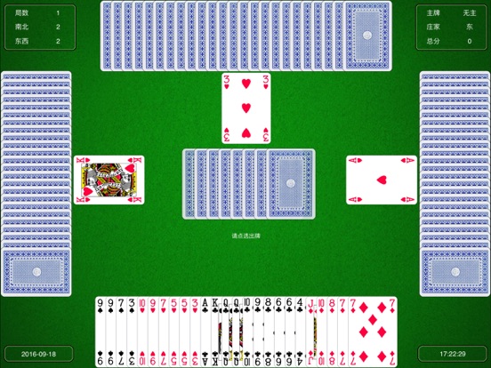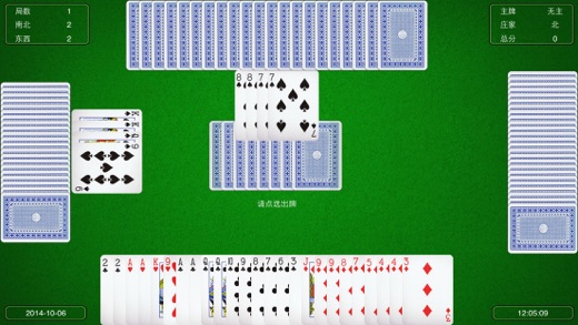 拖拉机: 单机版本,具备双升级与炒地皮两种游戏的功能,通过桌面按键进行切换。进入游戏时,默认为炒地皮,此时,按王对和级牌对的大小顺序,双方可以抄底反主,重新扣底牌。如果你对炒地皮不熟悉或不喜欢,可切换到拖拉机状态禁止抄底,此时,与一般拖拉机双升级的区别主要在于王对不能亮牌,因此没有无主的情况。 炒地皮规则:在升级游戏规则的基础上增加反主和炒底的变化,使游戏对抗性更强,变化更多,把握难度更大,更富有娱乐性和刺激性。 拖拉机共2副牌,共108张,每人25张,8张底牌。 一、牌的大小顺序 常主:大王 , 小王。 级牌:从2开始打到A。王不能亮牌,只能反无主炒底。 主牌从大至小依次为(打9): 大王 , 小王 , 主9, 副9, A,K,Q,J,10,8,7,6,5,4,3,2 除级牌(打9)外的副牌从大至小依次为: A,K,Q,J,10,8,7,6,5,4,3,2 拖拉机的构成: (1)副牌: 只有自然顺序相邻且花色相同的连对构成拖拉机,如334455,打4时3355不构成拖拉机。 (2)主牌:某花色为主时,大王,小王,主级牌,副级牌可形成拖拉机; 主牌花色A,K,Q,J等可形成拖拉机;不能互连。 无主时,只有大小王可形成拖拉机。 二、亮牌规则 在发牌过程中,第一次亮出级牌的花色作为主牌花色,有对可反主,若发牌结束仍无人亮牌,则打无主。王不能亮牌,只能反无主炒底。第一轮为抢庄,以后轮庄。 三、反底规则 反底不反庄。 庄家扣底牌后,其他家可以不断选择大小王对或级牌对反主并炒底,重新扣底牌。 反底花色顺序: 大王、小王、黑桃、红桃、草花、方块。大王反后,不能再反。 四、出牌规则 出牌时同等大小的牌以先出者为大。同花色的大牌可以甩牌。 第一家出对牌,其他家有对出对,无对为小。 将牌只能打单、1对、拖拉机,不能甩牌。 首家出某花色副牌时,其余家无此门花色时,可出主牌,称为 “ 毙 ” 。若首家出的牌中有拖拉机或对牌,毙牌时所出的牌必须是主牌,且其拖拉机的数目不得少于首家出的牌中的拖拉机的数目,对牌的数目也不得少于首家出的牌中的对牌的数目,否则被视为垫牌。 五、记分规则 升级所需分数规定:80分下台。超过80分后,每40分升1级,升5级封顶,A必打。大光(对手得0分)升5级。小光(对手得分<=15)升3级。对手得分大于等于20,小于40,升2级。对手得分大于等于40,小于80,升1级。 扣底:单扣(无对无论多少张)底分2倍。单对(无论多少张)扣底分4倍,2对或以上扣底8倍。 拖拉机保存游戏进度,您可使用“继续游戏”接续上次游戏。 虽经大量测试,但因程序过大,难免存在bug,敬请谅解。 祝您开心愉快。