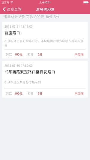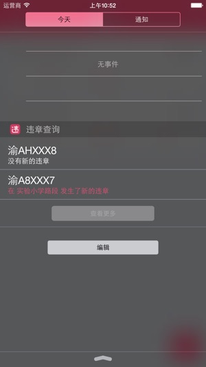 支持全国各个城市的违章查询,精确对接各地查询系统,且不需要输入烦人的验证码; 车辆数据与各地区交管系统同步,实时查询最新记录; 可查阅多个车辆的违章纪录,让您方便的管理您家的爱车; 可记录您的查询信息,多次查询无需再次输入; 保护您的爱车隐私,无车辆信息泄露之忧; 操作界面简洁,清爽,无广告,无插件的绿色软件; 支持iOS 8通知栏插件,下拉即可实时查询最新记录。