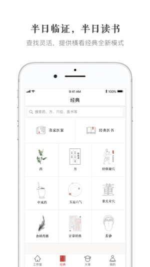 1、工作室 - 集成患者管理、问诊单、门诊信息卡片、方案制定、线上购药、随访复诊、代拍购药、疗效反馈等中医日常工作中常用功能。 - 患者只需通过微信扫码工作室名片,便可与医生随时沟通,进行线下预约及线上咨询,极大提高了中医的问诊效率,帮助医生在积累患者和诊疗经验的同时,也更好的获得口碑,提高收入。 2、经典 - 收录校对数万历代名家医案,根据病、证、症、医家任意组合查询 - 经方快速查询,并反向索引《伤寒杂病论》相关条文 - 收入校对百余本中医经典书籍,并持续增加,支持医书全文搜索及医书内搜索 - 药、方、经络、穴位、舌诊、食材药膳、董氏奇穴等,完整的资料库和强大的组合查询功能 - 一键直达…