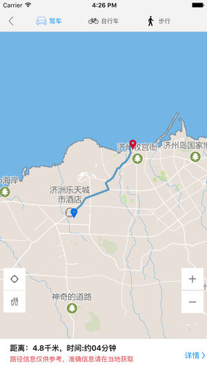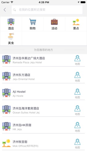 济州岛中文离线地图是一款支持中文地名和酒店标注的地图。所有数据全部打包在应用中,在离线环境在完全可用,是去济州岛旅游的必备工具。 主要特征包括: 1 地图数据完全离线 2 酒店全部中文标注,并提供酒店详细描述 3 部分重要地点中文标注 4 支持酒店查询,快速在地图上定位 5 支持景点、购物、美食、活动等信息在地图上的展示,并提供列表视图快速浏览 6 支持附近酒店、景点、购物、美食、活动的查询 7 支持离线路径规划