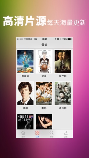 提供高清电影、电视剧、动漫和综艺免费在线观看。 汇集最新、最全的高清电影、欧美剧、日韩剧、港台剧、国内热播剧、综艺、动漫、纪录片、公开课等节目于一身,且同步更新从此不愁没得看! 全新的智能分类搜索配合精品推荐,“只有想不到,没有找不到”。 提供人性化操作方式,方便用户快速欣赏喜欢的影片。 提供影片收藏、查看影片观看历史等功能。 提供强大的搜索功能,只需输入主演、影片名等即可获取满意的结果。