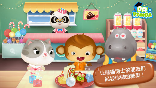 创造自己的糖果! *微信搜索 “熊猫博士” 关注官方微信 创造完美的糖果! 探索激动人心而又让人垂涎欲滴的熊猫博士糖果工厂吧!帮助熊猫博士控制工厂里的糖果机器,试验各种颜色、口味和形状的组合,创造你自己的美味糖果! 一起玩耍和学习! 熊猫博士糖果工厂鼓励孩子们玩耍,创造和沟通!在每一个精心设计的工厂里,孩子们不但可以选择自己一个人玩,还可以与一名朋友或家长一起协作游戏。 许多好玩的定制! 有数不清的方式供你定制各种不同的糖果!在充满趣味的弹珠台发射泡泡糖,在果冻糖实验室里激活想象力,或在巧克力工厂里挥洒创意! …可别忘了让熊猫博士的朋友们品尝你做的糖果哦!观察他们的表情,你就知道他们有多么喜欢这些糖果了! 游戏特色: • 超过60种方式供你设计并制造自己的糖果! • 每间糖果工厂都给你不一样的自由发挥空间 • 孩子们学到计划与协作,互助与分享 • 与朋友和家长一起玩耍和发现! • 观察熊猫博士的朋友们吃糖的表情! • 学习怎样混合并调配新的颜色! • 自由探索,没有时间或分数限制 • 儿童安全!没有应用内购买或第三方广告 ***注意:运行游戏需要iPad 2或更新,iPhone 4S或更新,iPod 5代或更新*** 隐私策略 作为儿童游戏的设计者,我们非常清楚个人隐私在这个数字化的时代有多么的重要。您可以从这里阅读我们的隐私策略:http://www.drpanda.com/privacy 关于熊猫博士 熊猫博士(Dr. Panda) 为孩子们提供最优质的儿童教育游戏,让他们在开心玩耍的过程中学到知识,认识世界。 如果您想了解更多关于我们或对我们是如何为孩子们设计游戏感兴趣的话,请访问我们的网站www.drpanda.com/about或中文域名www.熊猫博士.com。发电子邮件到 support@drpanda.com 或联系我们的 官方微信: drpandagames 新浪微博: weibo.com/drpandagames Facebook :facebook.com/drpandagames Twitter:twitter.com/drpandagames
