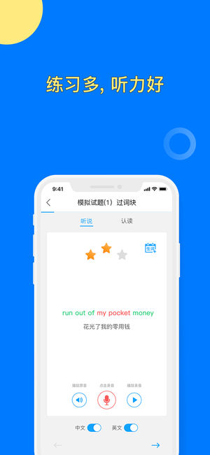 本应用为天学网旗下的手机客户端。客户端支持人机交互、智能实时评分、在线作业、学习数据智能分析、直播互动、展示投票等众多功能。将课堂放进你的口袋,使教和学更加人性化、智能化。此外客户端还支持天学网旗下众多经典产品在线或离线使用: 一、听力满分 1、听力个性化自主练习产品 2、晋级模式根据本次测试结果智能推荐接下来的练习内容 3、推送错题的同类题,举一反三 4、练习模式围绕考点、难度编排组织,便于针对性强化训练 5、教师可通过报告查看学生练习情况 二、听力风暴 1、外籍专家编写内容,高考主播录音,内容经典,十年磨一剑 2、随时随地、抛开听力书,离线练习 3、特别设计精听模式,支持逐题、逐句点听 4…