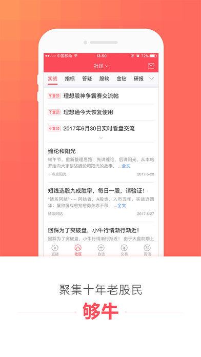 理想选股APP汇聚众多股市牛人播主、以文字直播的形式分享投资心得,实时解盘,解决投资难题,提前把握买卖时机。整合最有价值的股票论坛消息、深度挖掘热点题材,发掘投资机会。 理想选股特点: 【股市直播】实战高手在线解读股市政策,点评事件,预测走势; 【股民社区】炒股老手、大V云集,实时零距离交流互动; 【投资秘笈】牛人播主实时分享投资组合秘笈,发掘潜力牛股; 【全网消息】整合最全的股票论坛消息,实时掌控投资最新动态; 【决策内参】及时梳理最具价值股票信息,深度挖掘热点题材; 【免费问股】牛散名家、股市高手,一对一解答投资疑惑; 联系我们 客服电话:400 016 5518 直播间QQ客服:4000165518