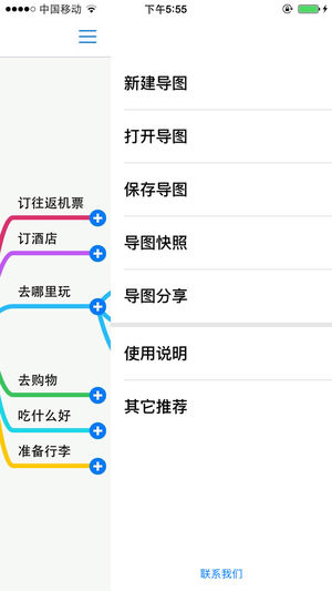 思维导图(MindLine)秉承极简设计的原则,没有繁琐的操作和复杂的界面,在这里你可以轻松构思和扩展想法和计划。 点击分支上的+号,即可向左右两边扩展分支,长按分支上的文本会弹出功能菜单,可以进行复制、剪切、删除、备注和标记等操作。制作好的导图可以导出为图片、PDF和Html等多种格式,并能随时随地分享给好友。 我们还提供了强大的云服务备份和同步导图文件,实现不同设备上文件共享,并确保文件不会丢失。登录我们的官网可以在线打开和编辑保存在云空间的导图。 官方网址:www.mindline.cn 联系邮箱:mindline@126.com 微信公众号:mindlines