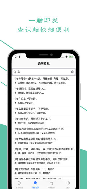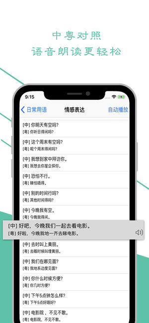 快速学习粤语/广东话从入门到精通,学粤语必备 ▪ § 全民学粤语的最佳选择 § ▪ 学粤语 Pro 包含了多达23个生活场景的三千多条真人广东话对话,包含了衣食住行、生活、工作、教育、旅游、历史等,助您轻松学粤语。 + 真人发音,中文粤语对照 + 包含日常用语、交际用语、常识应用等,带有搜索功能, + 汉语对照,粤语发音,学起来不再难~~快来学粤语吧 New. 左滑标记语句,可收藏 New. 自动连续播,畅听学习 — 粤语作为中国最具有影响力的方言,可以说是真正继承(古)汉语, — 全国七大方言之一,也是一种很有特色的方言,一种强势的方言。 — 粤语(粤语拼音:jyut6 jyu5),又作广…