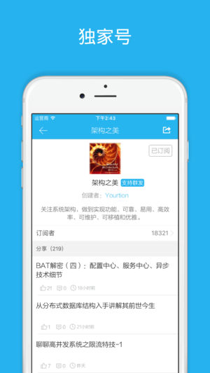 开发者头条 - 程序员分享平台 2015 年获「最美应用」官方推荐,程序员必装的应用。 开发者头条是由一群程序员创建的,我们运营了 developerWorks 的微博、微信,创建了码农周刊,已覆盖百万程序员; 我们更懂程序员。 > 我分享的,就是独家 【独家号】 独家号是程序员个人、媒体、企业或其他组织在开发者头条上申请的应用账号,旨在帮助程序员个人、媒体、企业或其他组织在移动端获得更多曝光和关注,扩大技术品牌影响力。 通过独家号,可在开发者头条上分享链接、吸引粉丝、互动关系。依托开发者头条的用户基数和良好口碑,能够为入驻者创造更大价值。 【团队号】 团队号是技术团队(媒体、企业或其他…