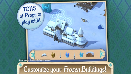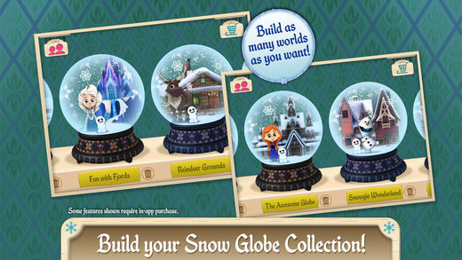 Join your friends from FROZEN to build your very own version of Arendelle and let your imagination run wild! • Customize FROZEN buildings and add tons of props to design your worlds any way you like. • Play with your favorite FROZEN characters and complete mini-missions to create the buildings of their dreams! • Unlock magical snowflakes and Snowgie surprises along the way! • Start with Elsa, Sven, two buildable locations, plus lots of buildings and accessories to create your own Frozen world. Then, add more characters, lands, buildings, and accessories as you expand your collection! FEATURES • Build in 5 locations: the North Mountain, the Forest, Troll Valley, Arendelle Castle, and the town of Arendelle. • Elsa, Anna, Olaf, Sven, and Kristoff will play, dance, ride, and even celebrate along with you! • Customize your own FROZEN buildings with different colors, roofs, chimneys, and more to unlock magical snowflakes. • Make your snow globe special by adding lakes, mountains, rocks, trees, puddles, and even snowmen! • Go on mini-missions to build your favorite Frozen characters’ palaces, castles, towers, amphitheaters, and more! • Unlock Snowgie and Marshmallow surprises! • Build your very own collection of snow globe creations—and then shake ‘em up to see an Arendelle snowfall! SPECIAL FEATURES FOR THE iPHONE 6s AND 6s+ If you’re playing Disney Build It: Frozen on an iPhone 6s or 6s+, you can use the device's 3D Touch feature two exciting ways. Once you’ve built at least one snow globe, use Home Screen Quick Actions to jump into your snow globes at the blink of an eye. Then, inside your snow globe, use 3D touch to take a flying tour, and see your world up close like never before! **NOTE: This app is not compatible with the iPhone 4 or the iPod Touch 5th Gen 16GB Before you download this experience, please consider that this app contains in-app purchases that cost real money, as well as advertising for the Walt Disney Family of Companies. If you’re experiencing difficulties with audio, please check the audio settings with your device to see if your device is muted. If that doesn't solve your issues, please visit our customer care FAQ page here: http://help.disney.com/en_US/Apps/Disney-Build-It-Frozen For additional information about our practices in the United States and Latin America regarding children’s personal information, please read our Children’s Privacy Policy at https://disneyprivacycenter.com/kids-privacy-policy/english/.
