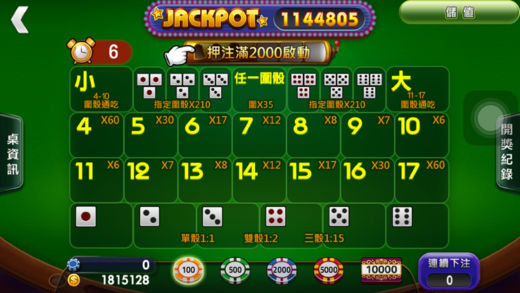 =明星3缺1團隊全新力作!千萬會員強力推薦!= *上架 2日即登上AppStore的遊戲類下載TOP5 *上架首日即登上AppStore的Casino類下載No.1 *上架首日即受147個地區Casino類熱門推薦TOP5 ==遊戲特色== *一指下注~圍骰最高賠率210倍! *真人甜心荷官隨時隨地陪你玩! *超驚喜的拉霸JP彩金 *收集純金 99999金盅獎 簡單上手又快速制勝,一鍵下載,立刻體驗賭場華麗風情 gametower平台熱門遊戲行動化,《甜心骰寶》堂堂推出行動版! 發跡亞洲,流傳全球的經典骰子遊戲,只要預測骰盅開出的點數並押注,開骰後立即回收贏得的獎金! 骰寶原為中國最受歡迎的古老的遊戲之一,不僅人氣至今於澳門賭場仍歷久不衰,更已流傳至世界各國的高級賭場如拉斯維加斯或大西洋城。 《甜心骰寶》不但保留了傳統骰寶的精髓,更加以改良推出與眾不同的特色如下: 多重投注,小賭怡情大賭豪情,操之在手不沉迷~ 開獎紀錄隨時更新,最近50局開獎紀錄隨時查閱,幫助擬定押注策略。 所有玩家同場遊戲,熱鬧下注公平競爭,開骰結果一目了然,絕對公平、公正、公開。 獨一無二超高210倍圍骰賠率,30秒致富不是夢想! 三位真人甜心荷官陪你玩,美艷火辣、氣質端莊、嬌憨可愛,不同風情的甜心永遠陪您再戰一局。 超驚喜拉霸JP彩金,單場下注超過2000遊戲幣就能啟動拉霸機,百萬以上JP獎金天天送。 收集純金99999金盅獎,只要拉霸機出現金色骰盅連線並可累積金盅獎,集滿3個金盅再送99999遊戲幣。 免費下載、新註冊送遊戲幣、每日系統自動補幣~讓您玩個痛快! 歡迎玩家註冊 gametower 會員,獲得更多驚喜與好康。 每週三上午 9:00~12:00 維護