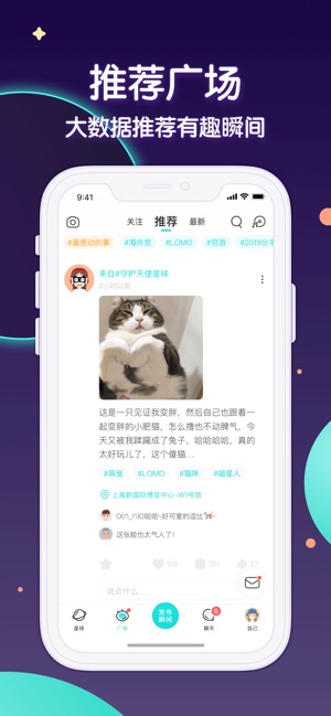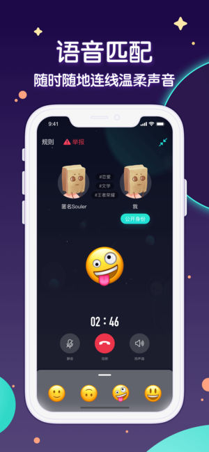 “Soul app是爵士乐手胡莎莎(Apple),插画大师乌猫老师,阿里巴巴影业制片人都强烈推荐的心灵社交软件”。 时下最in的弱关系社交,通过完成30秒的“灵魂测试”,来找到心灵相通的小伙伴。更有“Soul荐”算法,秒推最能懂你的陌生人,随时随地聊天分享~还可能找到Soulmate哦!! 功能介绍: 1. 灵魂自测游戏-无需填写任何资料,仅回答几个问题就可以找到内心契合的陌生人。 2. 星球- 深情把玩3D星球,邂逅喜欢的TA。 3. 私密blog - 微信微博上发不出的话,默默记录在案,而恰巧有懂自己的陌生人在意。 使用场景: • 不喜欢约约约,也不喜欢严肃婚恋,只想找个人说说话 •…