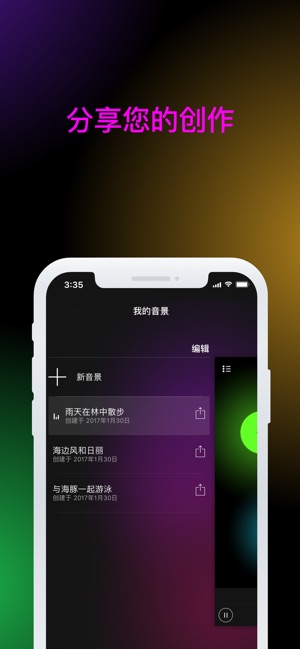 放松自己,用TaoMix 2获得更好的睡眠。 让自己置身于放松和身临其境的大自然氛围。个性化您的创意,并与您的亲人分享。 立即下载TaoMix 2,进入无限的声音世界。 使用方法: TaoMix 2提供一种独特、简单的方式,让您可以创建自己的放松音景,音景可以随时间不断变化,带您沉浸其中。 1. 将令人放松的声音添加到音景。 从中国高品质声音中选择或者输入您自有的声音。您可以根据喜好添加任意数量的声音,这些声音会以色盘的形式呈现。 2. 修改您合成的作品。 移动色盘和白色光标:一种声音距离光标越近,它的音量就越大。 3. 坐下来,放松自己...... 在大自然的神奇歌声中迷失…