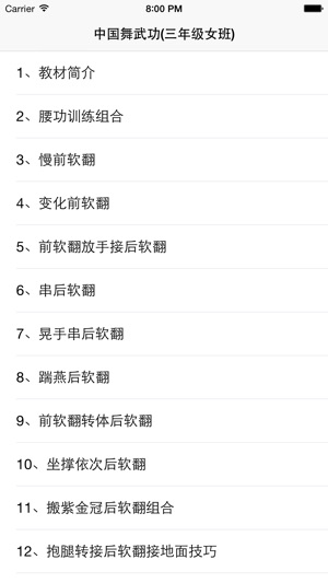《新版中国舞蹈毯子功》为北京舞蹈学院附属中等舞蹈学校中国舞蹈武功技巧课。 所有高清视频均离线保存,无广告、无需联网即可观看,同时支持横屏全屏播放。 三年级女班视频内容有: 教材简介 腰功训练组合 慢前软翻 变化前软翻 前软翻放手接后软翻 串后软翻 晃手串后软翻 踹燕后软翻 前软翻转体后软翻 坐撑依次后软翻 搬紫金冠后软翻组合 抱腿转接后软翻接地面技巧 原地串后软翻 原地串前软翻 圈脚柱 大脚柱 脚柱接倒踢紫金冠 脚柱叉接背转 趋步前手翻 划臂鱼跃前手翻 趋步侧手翻 前、侧手翻连接 串侧手翻 趋步侧空翻 趋步挺身前空翻 侧空翻追步接侧空翻 侧空翻追步接前空翻 串侧手翻接侧空翻 前软翻接前空翻 圈…