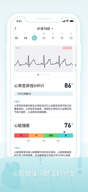 米动健康全新升级! 米动健康希望用简单、专业、有趣的方式,监测健康数据并帮助你培养良好的习惯,生活得更加健康。 【心电数据随时随地采集,关注心脏健康】 · 支持离线测量,身体不适时按住手环电极即可采集心电数据,便于找出原因 · 根据国内外科学研究结果,智能分析心率变异性(HRV)、心脏强度,心脏风险等级及自主神经类型等。 · 通过米动健康人工智能算法发现异常心电数据时,给用户发送健康预警信息。 · 支持导出心电数据。 【全天心率监测】 · 通过24小时全天心率监测,可分析静息心率、全天平均心率、清醒平均心率、睡眠平均心率、全天总心搏等。 · 支持历史心率数据趋势查看。 · 当心率…