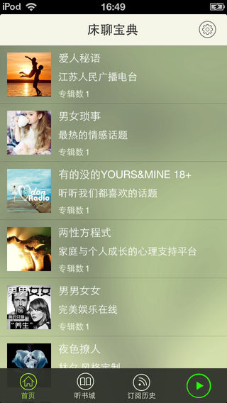 你单身吗?你正热恋中吗?你正在婚姻疲惫期中挣扎吗?你一个人吗? 床聊宝典,为你准备了人生多个阶段中男人和女人的种种话题和剖析,既私密又坦诚,晚间夜生活不再寂寞。 - 放松心情,合上双眼,听2016最激情的两性指南! - 最专业的两性生活指南,重塑你对两性隐私的认识! - 内容丰富,多重尺度任你选择,完全免费,持续更新! - 特别适用于青春期的纯情男女,培养您的细腻感情! - 在路上!地铁里!边走边听!想怎么听都行! 还在等什么,快来下载吧!