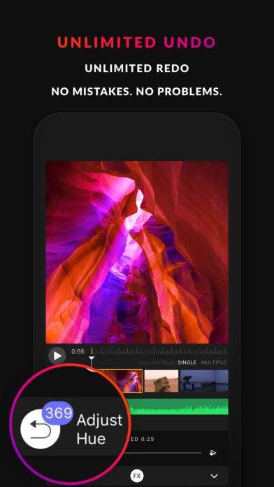 Blink is a real time video editor. Every adjustment, every filter, every tool works in real time. No loading screens, no render times, no waiting, ever. EDIT IN REAL TIME • All editing is performed live. Never sit through another loading screen • Record in 30,60,120, and 240 fps • Full screen previewing UNLIMITED UNDO & REDO • Every action is undoable IMPORT • Import from anywhere (videos, photos, music) • Supported apps include, but are not limited to: - Photos Library - Pixabay - a free community of over 1,000,000 photos and videos. - FreeSound - a free community of over 300,000 sounds. - iCloud Drive - iTunes - Dropbox - Box - Google Drive - One Drive CINEMA GRADE COLOR CONTROL • Adjust brightness, contrast, saturation, hue, vibrancy, highlights, shadows, exposure, and gamma • Levels tool with fully rendered histogram to assist in color balancing • Curves tool creates an RGB curve for fine-tuned color blending • Numerous filters to make your movies look like they were shot by famous directors AUDIO • Add music from your iTunes library • Volume ramping FRAME THE SHOT • Ken Burns • Trim, crop, and split videos • Duplicate assets • Change background colors • Multiple aspect ratios SPECIAL FX • Add transitions in-between frames • Slow and fast motion FX AIRPLAY • Custom second screen editing experience • Edit with a group using Airplay OPTIMIZED • Uses Apple's latest libraries - Core Image and the Metal Framework • Lossless compression of videos in the background • Weismann score of 12.6 (PP) EXPORT • Share your film by exporting to every platform including Facebook, Instagram, Twitter, ... • Export up to 4K • Take a still shot of your video and export any frame as a png, jpg, or pdf up to 4K quality ASPECT RATIOS • Square 1:1 • Portrait 9:16 • Standard Def 4:3 • HD TV 16:9 • Widescreen Cinema 1.85:1 • Anamorphic Cinema 2.39:1 Designed exclusively for iOS, Blink compiles the most powerful suite of editing tools available on the App Store. Everything from adding music, trimming, cropping, speed adjustments, filters, transitions, and numerous other features are all just taps away. What’s more, is that Blink allows you to make all of these edits to your video live. Iterate faster on your ideas and make adjustments on the fly. Blink is optimized to take full advantage of your phone's hardware for an optimal experience. Happy editing.