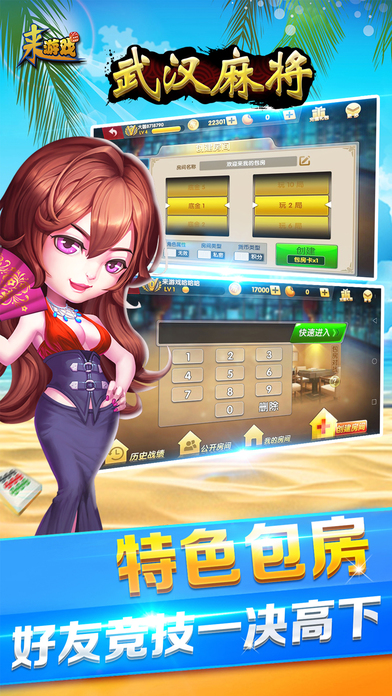 来游戏官方全新力作,引领棋牌手游新时代! =====游戏简介===== 武汉麻将-来游戏,采用武汉地区流行的麻将规则,特色玩法如:红中赖子杠、二五八、七皮四赖等。灵活的玩法配合来游戏的3D界面,欲罢不能。 =====游戏特色===== 【包房】新增特色包房,灵活创建房间,邀请好友竞技一决高下 【回放】边录像边玩牌,牌局回放功能让你在回顾牌局的时候还能炫耀牌技 【比赛】更多赛事活动搭配精美礼品,用惊喜回馈用户 【角色】结合手游经典RPG,带着你的MM上牌桌,享受暴击快感 【宝箱】多样钥匙开启多种宝箱,欢乐多多惊喜不断 ====联系我们==== 微信公众号:laiyouxi >>来游戏——Unity3D引擎打造的休闲竞技类游戏平台,给您身临其境的3D游戏体验<<