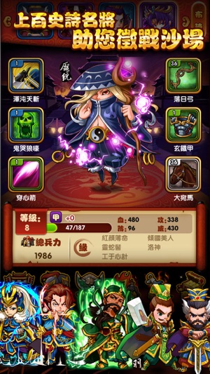 简介 上古轩辕皇帝之秘,跨越时空的秘宝再次降临叁国乱世! 沉睡的叁方巨龙蠢蠢欲动,权利、力量之斗争拉开帷幕,修道之人入世即将逆转天下! 改变殞落猛将之宿命,集结乱世之英豪,手持神兵展现出天下无双的力量吧! 而在被扭转命运前方,不可预知的未来亦即将降临…… ——故事—— “阴符经”,蕴含着皇帝智慧与法术的道书在隐匿千年后惊现。 若就如此放任不管,秘宝终会将未来走向改变,叁国或变得不復存在。 不涉世事的修道之士為了寻回秘书即将入世,集结被宿命所困武将,把这乱世导向正途…… -数百全新的乱世武将 集合了叁国眾多武将,无论是一代名将或时运不济而殞落之人,这些超过上百种不同造型…