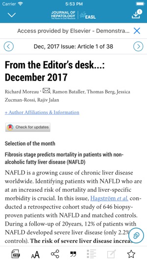 Journal of Hepatology Official Journal of the European Association for the Study of the Liver It just got a whole lot easier to keep up with the latest clinical and basic research in the field of hepatology. The Journal of Hepatology app brings you the convenience of reading your favorite journal…