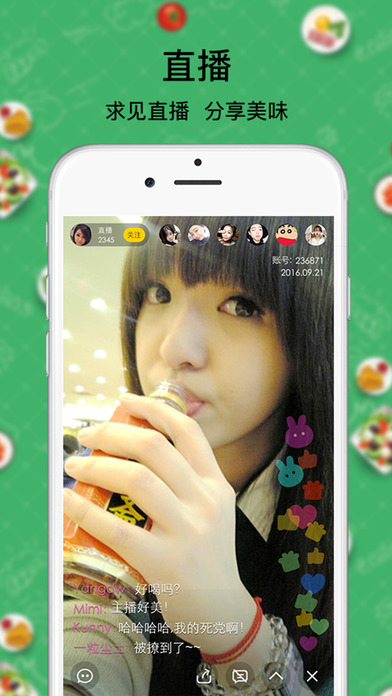 一个接地气的直播社区,高颜值主播与你一起快乐地玩耍。 【没套路】颜值主播全部实名认证,你可以放心砸钱。 【没脾气】颜值主播带你飞,足不出户也能寻遍小巷大街。 【想分享】生活当前先秀颜,圈子好友一键共享,生活与我都要美美哒。 【联系我们】 官方网站:www.qiujian.cc 微信公众号:求见 QQ群:552151059