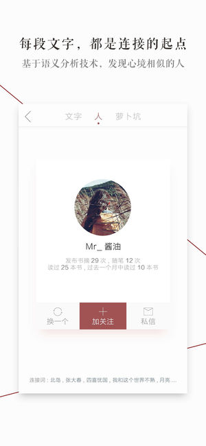 一个小而美的书摘与短文制作工具,一个深度使用文字去发现与连接彼此的世界 =============================================== 文字之美,对我们来说,不可替代。 白纸与黑字之上,我们看到的, 却是虫鸣犬吠,离人眼泪,红叶满天,长歌饮醉。无数幅画面,无数个故事。 这些画面之缤纷,故事之绮丽,令人沉醉。 笛卡尔说『我思,故我在』。 面对文字,我们用想象和思考构筑起自己的世界,体验最纯粹的存在感。可以天马行空,可以悠然自得,可以握拳屏息,也可以凝神专注。所有的认知与感受,都是真实的。但这个世界只属于自己一人,别人难以触及,难以进入,更难以理解。 当我们被…