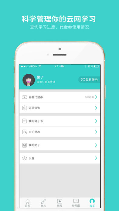 「云网学习」是一款一站式移动考试学习平台,内容覆盖公务员、教师、金融、医学、建筑等数个大类和数十个小类考试。平台通过2015、2016年海量新题库、视频解析、电子教材等多种方式展现内容,辅以考友间互帮互助交流功能,为考生提供立体化学习体验,帮助各种考生成功上岸。 功能特点: 1、签到有礼: 每日签到赢积分,摇转转盘兑大奖! 2、在线直播: 最新热点事件概括、筛选适合出题的重点、热点、分析热点内在核心本质、名师在线解答、指导,让你在最短的时间内掌握重要考点。 3、今日推荐: 秒杀、特价、精选、尾书等超值图书和产品独家提供; 4、资料定制: 针对不同考生答题情况,完成能力测评后,进行资料定制,并将定制秘笈进行发配。 5、每日任务:将学习内容日常化,每天一分钟真题任务、阅读任务、微课堂,轻松复习、轻松过关; 6、每日一题: 每天坚持一分钟,公考越来越轻松;历年真题每日抽选一题,名师视频解析,更深的了解该题型的解题方法和思路; 7、每日一读: 设定时间,及时通知,每日微听,不同考点,轻松挑战; 8、题库: 考试题库包括公务员考试、事业单位、教师资格、教师招聘、基金从业、证券从业、护士执业资格等考试类型下相关试题,题型数量超过10万; 9、练习: 针对不同类型知识点智能抽题、强化记忆、星级判定,对用户答题的正确率及掌握程度更有效的评定;立足真题、抽取模拟题公务员考试备考的核心,确保在实际考试中灵活运用、轻松应对。 练习错题可轻松删除,并支持收藏经典、易错题型及真题,供考生考前针对性复习; 10、课程 重量级名师授课,专项训练课程包公开亮相,一对一的精讲,一对一的培训,辅助考生可轻松上岸;首页推荐最新及主打课程,满足不同考生上课需求; 11、考霸擂台: 考霸擂台包含众名师精心设计的高端试题,让你快速熟知此类题型;获知"秒杀"窍门,让你在考试中遇到同类题型快速判断并得出答案,提升效率,节省考试时间。 12、考友切磋: 针对个人技能进行提升,与你的好友取长补短、相互学习、相互比较; 13、申论批改: 《申论》考试被很多考生视为通向成"公"之路的最难点,我们可针对考生的需求进行名师免费批改; 14、帮帮团: 可针对考生的不同需求对行政职业能力、申论、面试进行在线交流,各路名师会为你一一解答; 15、电子书: 高质量考试用书免费下载,随身携带,想学就学,让你更有信心的备战; 16、图书: 最新最热考试用书推荐,大量图书可在线购买,好折扣等你来。 17、代金券 支持积分抽兑代金券,活动期间免费领取,可购买考试课程等多种产品; “精”“新”打造,备战公考;课程简短精炼,突出实战技巧;从不标榜高高在上的神话,却用最认真实在的态度,高效提分,高效备考。