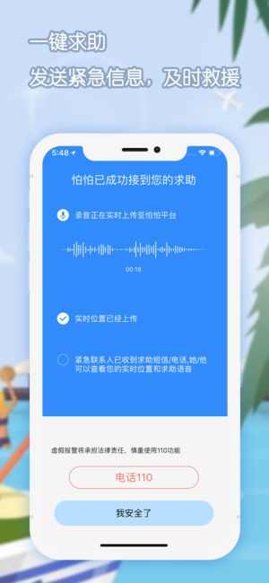 怕怕——国内首款保护女生出行安全的防身软件,也是首个公安合作信赖的定位防身软件,7*24小时保障你的人身安全! 当你在晚上打车或走夜路时,打开怕怕守护,一旦遇到紧急情况,可以让家人朋友或警方迅速找到你。 【用户评价】: “晚上女儿坐车去补习班前,我都会要求她打开这个软件。”——李nana “孩子一进入学校后,我手机就能收到安全提示通知了。这才能让我放心下来,感谢这个良心的软件,谢谢你们。”——吴家顶梁 “非常感谢,刚刚和男朋友试验了一下,他说客服还打电话给他确认了。感觉这个软件非常靠谱,谢谢!”——风影Anne “谢谢你们,虽然是一款小小的手机软件,却给我们一个大大的安心”——欧拉欧拉 -…