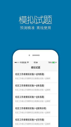 软件为社区工作者公开招聘的考生精心准备了2014~2015年社区工作者的历年真题,专项训练,模拟真题。该软件覆盖最新的考试考点考纲,把握考试重点,预测试卷紧跟命题趋势,帮助考生顺利通过社区工作者考试。 【专项训练】:综合基础知识单选题,多选题,判断题 公文题 案例分析题,帮助考生进行专项训练,把握考试重点,全面熟知考情。预测试卷紧跟命题趋势,涵盖新考点。达到快速提分的目的。 【历年真题】:覆盖最新社区工作者公开招聘真题 【模拟真题】:预测试卷紧跟命题趋势,涵盖新考点 【错题重做】:盲点巩固,加强练习,快速提分 【收藏功能】:一键收藏,随时查看,解析详尽 【离线使用】--无广告,无需…