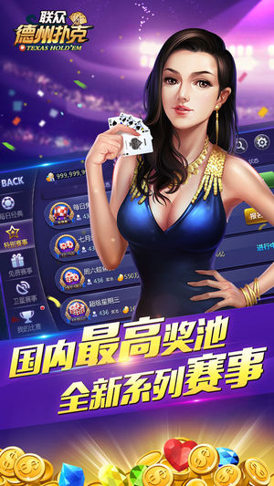 *入围2015年度最受欢迎手机棋牌游戏 ● WPT华人冠军,享受与国内外职业牌手同台竞技乐趣。 ● 全新赛事系统,免费赛、实物赛、百万赛、SNG、深筹赛、卫星赛等多种比赛任你体验 ● 游戏界面设计精美, 出牌动画效果简洁流畅 德州扑克(Texas Hold’em poker)是风靡全球的扑克游戏,相比斗地主、斗牛、梭哈、十三水、扎金花等传统游戏,德州扑克具有更强的竞技性而迅速受到中国玩家喜欢。 联众德州扑克与天天德州、博雅德州扑克、JJ德州扑克相比,有更丰富活动和比赛奖励;众多的德州扑克牌手资源,您可在爱奇艺、优酷、腾讯视频等视频网站和斗鱼、熊猫TV等直播平台观看联众签约牌手比赛视频;同时…