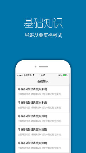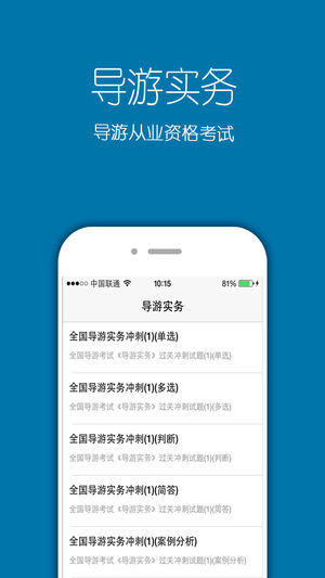 软件精心准备了2008~2015年全国导游考试以及各省导游考试的历年真题,专项训练,模拟真题,以及章节练习3万题。该软件覆盖最新的考试考点考纲,把握考试重点,预测试卷紧跟命题趋势,帮助考生顺利考试。 【专项训练】:基础知识,导游法规,导游实务专项训练,把握考试重点,全面熟知考情。预测试卷紧跟命题趋势,涵盖新考点。达到快速提分的目的。 【历年真题】:覆盖最全的历年真题 【模拟真题】:预测试卷紧跟命题趋势,涵盖新考点 【错题重做】:盲点巩固,加强练习,快速提分 【收藏功能】:一键收藏,随时查看,解析详尽 【离线使用】--无广告,无需网络,方便便捷。 章节 第一章 旅游业发展概论 第…