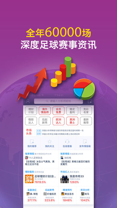 视频爆料-全球超过50个国家和地区的情报线人 天天收米-每天帮助超过7000000名彩票投注者获益 情报市场-累积超过80000位足球爱好者通过平台发布分析预测 深度分析-全年超过60000场深度比赛前瞻分析资讯 最优收益-通过不同公司投注赔率分析提供最优投资价格 智慧用哪里?完成注册即可发布推荐,和订阅者实现共赢,更有机会成为理财服务决策总监。 足球理财怎么选?推荐市场海量推荐内容任你看,榜单筛选、各类玩法、显赫专家,小白也能赚翻天。 更有足球彩票比分直播、足球比赛直播、足球实时新闻、足球技术统计。提供全方位足球赛前、赛中、赛后数据,独家中超前瞻! 足球比分-全球赛事最快最准即时足球比分、最齐全的足球彩票比赛事件与实时数据统计 免费足球直播-中超、英超、亚冠、西甲、意甲,更多全球足球赛事无广告直播 足球魔方-你想知道对阵双方的实力、排名、战意、过往战绩优劣势吗?足球魔方数据告诉你 足球情报站-1200多个情报站,人人可以做站长,各类吐槽投票预测样样齐全 【足球魔方品牌】【国内第一足球资讯品牌】 - 淘宝彩票,百度彩票,腾讯彩票,新浪爱彩,搜狐彩票,新英体育,彩票大赢家,PPTV体育,乐视体育,新英体育都向用户推荐使用足球魔方 - 大陆及台湾澳门地区英超官方合作伙伴,《足球魔方》节目每周六、日17:00新视觉高清频道直播