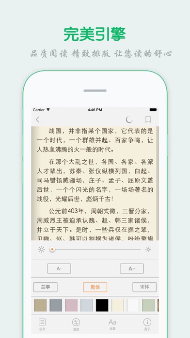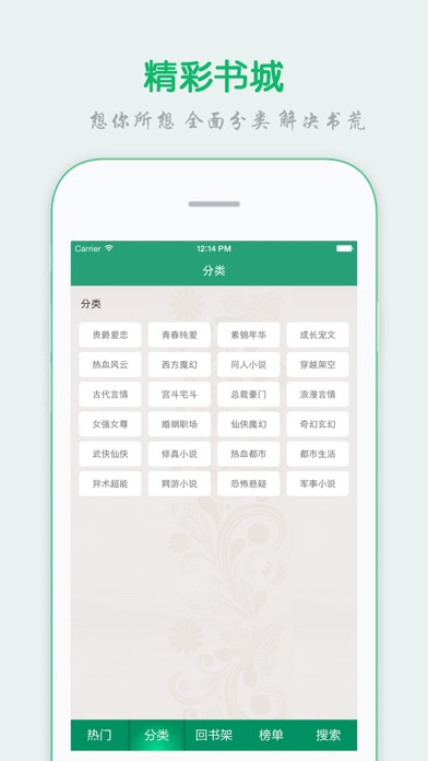 简洁的设计风格,经典不腻的小说,用心的专题书籍添加,完本小说免费下载,一切都为用户着想! 特色说明: *涵盖玄幻、穿越、总裁、言情、宫斗、官场、励志、恐怖、名著等分类全本小说排行榜。 *内置书库,支持删除旧书和下载新书。 *全屏阅读、书签收藏、智能记忆上次阅读位置、白天/夜间/养眼模式等最符合书友阅读习惯的贴心设计。 *完美适应所有版本的iphone/ipod touch/ipad设备。 *专注精品图书阅读服务,您绝对可以信赖的品质。 这不仅仅是一个软件,更是你坐车时,闲暇时,睡觉前的朋友;这里有经久不衰的世界名著,有怀念青葱岁月的文字,有网络最流行小说;这里有豆瓣读书高分小说,有当当、亚马逊最热卖小说,还有起点、晋江、红袖点击量最高的小说。 不断更新的最新小说,带你一起畅游书籍的海洋。 近期服务器调整升级,将大幅提升下载速度。