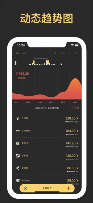 App store 编辑推荐记账软件 没有内购,一次付费,所有功能可用 * 独有的家庭共享功能,可以让你和家人一起记账 Costgram 可以添加你的另一半,或者其他家庭成员,在自己的手机上记录的收支情况,并且共享,这样全家的开支就可以一览无余,也可以方便的查看和对比,知道什么时候花的钱,花的什么钱,谁花的钱,下一步怎么计划都井井有条。 * 独特设计的动态趋势图,让你的收支情况跃然纸上,一览无余 记了很久的帐,怎么样才能对整体收支情况一目了然?我们希望 Costgram 的动态趋势图可以给你这个答案。 动态趋势图,通过最简单的交互 - 左右滑动,即可看到连续的时间范围内,收入和支出呈现什么…