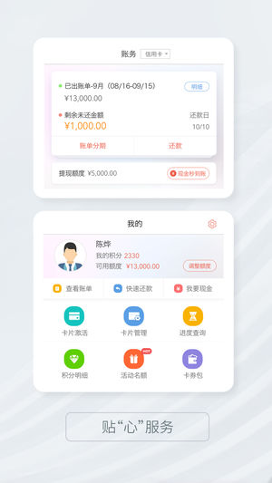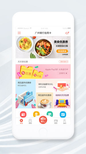 广州银行信用卡是广州银行信用卡唯一官方客户端。 口袋小广,您随身携带的移动金融平台。 【缤纷活动,尽享优惠】限时优惠名额,火爆优惠活动,专享城市优惠,卡友推荐好礼,给您最全面的小广活动。 【丰厚积分,秒杀兑换】爆款秒杀、明星单品、精品兑换、新户开卡礼,尽在小广积分商城。 【明细掌控,分期随享】信用卡还款0费用。账单分期/消费分期实时办理。消费明细、可用额度随时了解。 【我的权益,一览无余】我的积分、我的卡片权益、我的卡片管理,一切尽在“我的”。