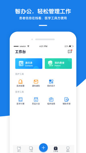 禾医助——助力医护职业成长,1000多家公立医院的医护工作者都在用的APP。 【学术资讯】海量经典病例、前言学术研究、最新医学资讯,助您轻松得到学术成长,了解行业动态; 【医拍广场】前沿学术交流,经典病例讨论,专家犀利点评,同行学习交流,助您快速积累业界人脉、提升专业素养; 【我的医拍】随时随地记录并存储您感兴趣的医学内容,手机就是您的专属资料库。专业标注功能,灵感看点随手记,不用再为一闪而逝的灵感而懊恼。 【工作台】院内通讯录,待办事项,专业医学工具,提升您的工作效率。