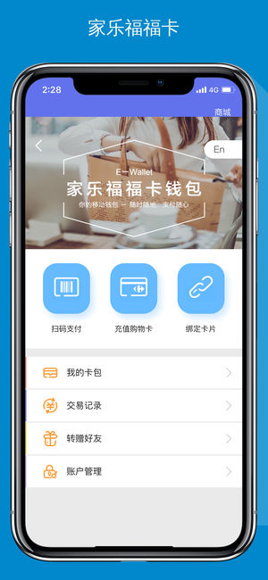 “家乐福网上商城”隶属于家乐福集团,通过全国与全球直采,安全监测、将国产高品质与世界名品汇集于此,放心!便利! 服务范围:上海、北京、成都、昆明、苏州、无锡、武汉,哈尔滨、沈阳、天津、南京、深圳,更多城市,陆续开通…; 家乐福福卡:可在线充值,可绑定实体购物卡,线上和门店消费均可使用,还可以转赠亲友; 全球购 : 第一站台湾,嗨购全球; 便捷售后:开通城市任意门店均可无忧退换货手续; 支付方式:银联支付/微信支付/支付宝支付/福卡支付/货到付款 联系方式: 微信:jialefushangcheng