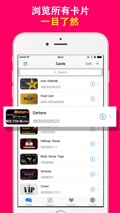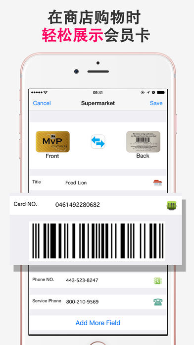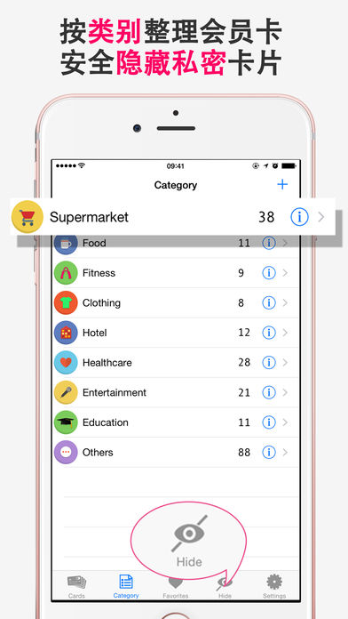 ***限时五折优惠*** ***没有任何限制+无任何广告*** 将你所有的会员卡存储在VIP Cards应用里面 - 解放你的钱包,再也不用带着一大堆卡片出门了!简单就是高效! **完美支持Touch ID指纹以及密码锁解锁软件!** VIP Cards简单易用,你只需要将卡片拍照存入App里面,它将自动生成相应的卡号和条形码。当你在商店购物的时候,只需要拿出手机打开VIP Cards就可以轻松找到相应的会员卡,将二维码图片展示即可如同塑胶的会员卡一样使用。 使用简单: - 无需注册,下载好打开App就可以直接使用; - App已经为你内设了丰富的模板,方便您有条理的输入卡片信息,同时也支持自定义条目; - 将不同类型的会员卡分类管理,简单易用。 ####主要特性#### * 除了常用的各种会员卡,您还可以存储例如信用卡,名片,护照,身份证,优惠券等信息 * 支持插入记事本备注、图片记录等敏感信息 * 支持自定义各个模块,完美DIY卡片信息 * 隐藏列表:存储您最隐私的账户信息,可该列表设为隐藏,只有自己能看到 * 通过iTunes、WiFi或Dropbox,简单备份和恢复数据 ####安全性能#### * 采用AES-256 bit 军事级加密技术保障数据安全 * 使用软件密码锁功能,只需记住一个主密码解锁软件 * 所有数据均存储于手机本地,你可以将数据备份文件备份至您的电脑或者Dropbox中 * iOS 8 & iOS 9 系统的iPhone 5s之后的手机可以使用Touch ID解锁软件,不用记忆主密码,使用更加便捷 * 软件自带的数据自毁系统,如果您的手机丢失,当其他人输入错误解锁密码达到设定的最大次数时,数据将自动毁灭,最彻底地保护您的数据安全 * 除了你本人以外,其他任何人包括开发者在内都无法获取您的数据信息 ----------------------------------------------- 所有存储在VIP Cards会员卡管理软件的数据都是100%隐私和安全的。您的所有数据都只会存在您的设备而不会上传到我们的服务器。没有您设置的开锁密码,任何人包括我们都无法获取您的卡片数据! ----------------------------------------------- >> 友情反馈: 如果您喜欢本应用,请一定给我们最真诚的评分,您积极的评分和回复,将是我们不断改善应用的动力。 如果您觉得本应用有什么不妥之处或者有什么功能欠缺的,请一定通过下面的邮箱联系我们,不要写在app store的应用评价里面,因为只有这样我们才能够回复您。您在邮件提到的任何问题,我们将非常乐意给您回复! E-mail: estill_hill@hotmail.com