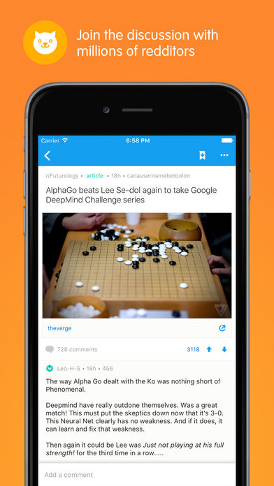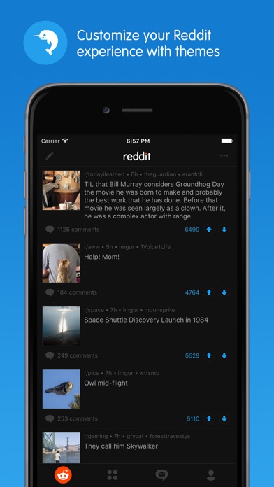 Get the official Reddit app to discover all the top trending topics, breaking news, viral videos, funny jokes and hot memes. The freshest content on the internet brought to you in one app, with infinite scroll, autoplay GIFs, and the fastest-loading interface of any Reddit app. .-= Thousands of Communities =-. Looking for news? Check out r/news! Need some funny jokes? Head on to /r/Jokes/ and pack a spare pair of dry pants. Or maybe you’re passionate about cats being scared by cucumbers. We are too, at r/CucumbersScaringCats! There’s a subreddit for anyone (and everyone) to share, vote and discuss just every topic imaginably. .-= Your Personal Content Democracy =-. You can post it, you can share it, and you decide what is hot or not by upvoting and downvoting content. Get the socially curated, constantly updated feed of the news, fun stories, pics, and videos that interest YOU. Or what interests millions of other users on r/popular. Unlike other social networks, on Reddit you can be yourself with your Reddit profile and persona, disconnected from your real-world identity. So your mom won’t know you’re into /r/knitting. .-= Un-bore Yourself =-. Tired of mildly interesting content and monotonous updates on social media feeds? Find the stories and conversations that matter to you. From entertainment news and politics to fun DIY projects and cats (lots of cats) - create your own feed of subreddit subscriptions to never be bored again.