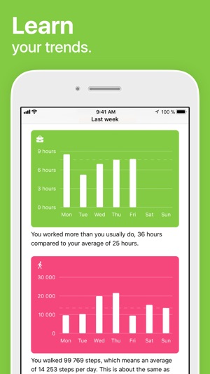 Life Cycle automatically keeps track of your time and presents your life sorted into slices. It shows you your daily activities, places you go, and who you spend time with. Life Cycle weekly journal provides personalized insights and clarity to your week passed. Start each week with a look back. Rem…
