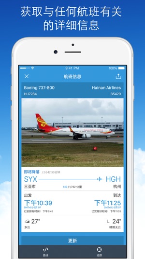 实时航班 是一款简单但是功能强大的工具,您可以利用它在线查看世界各地的班机并且能够即时获取有关航班的最新信息!有了它,您可以追踪您家人或者心爱的人的航班,就好像您也在和他们一起旅行一样,您也能够找到最合适的时间到机场去接他们。 不论您是专业的飞行员还是航空爱好者,您肯定会喜欢它简单、清爽、信息量大的界面以及强大的功能! 特色 * 在线追踪世界各地的班机与直升机班次 * 利用便利的提醒通知您航班时间安排方面的变更:获悉航班状态、取消的航班、新的出发和到达时间等等 * 搜索特定的航班、机场和位置 * 获取有关航班的详细信息:从飞机特性及图片到飞机的航线和时间表 * 发现最新的机场信息,其中包…