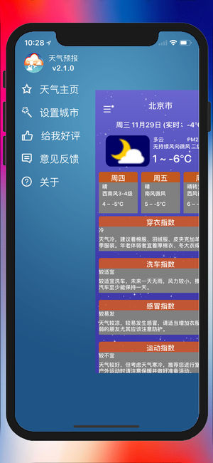 【产品简介】 包含全国3000多个城市天气信息,采用国内外多家气象机构数据,天气信息权威、准确、全面。提供信息全面24小时预报、精准的未来3天预报。空气质量、污染指数、温度趋势、PM2.5 等更加丰富、精准天气信息!提供穿衣、洗车、紫外线、感冒、运动、旅游等生活指数,是您日常生活、出行旅游的必备APP! 【特色功能】 1.语音播报:甜美女声为您播报当前天气。 2.选择城市:独创的通过地图拖动选择城市功能,自动定位城市。 3.周边天气:调用附近地图,真实坐标查阅当前城市天气。 4.生活指数:提供穿衣、洗车、紫外线、感冒、运动、旅游等生活指数。 5.分享天气:随时通过微信或微博分享天气信息。 6…