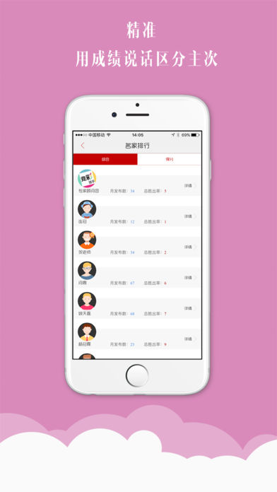 产品介绍: 一、 专业大师分析,预测比分发布,资讯内容推送。 二、 竞彩信息通知,赛事内容报告,赛事信息深度挖掘。 三、 综合赔率数据计算,赛事背景,球队分析,场地情况,球员资料。 四、 全球博彩资讯,精准提供有效赛事。 竞彩猎手是一款针对竞彩足球、足球胜负彩、篮球彩票等各种竞技彩票玩法的专业推荐、预测及分析工具。竞彩猎手汇聚彩票行业多位名家高手、大师,集合了丰富的赛事情报和数据,深度挖掘赛事信息、综合赔率数据、赛事背景、球队积分、场地情况、全球博彩资金流向等关键要素,为彩民提供最为精准和有效的赛事预测资讯。 早餐解析:针对每天所有竞彩赛事进行初盘分析,第一时间快速获取当日赛事情报,综合前期对阵双方的资讯、做早盘点评和预测。 专家推荐:聚合行业名家高手、大师,在赛事临近开场前做关键场次精准推荐。 彩友观点:竞彩猎手欢迎民间高手向我们投稿,像足球论坛的精华贴一样,我们会每天精选彩友的观点,随时随分享出来。 竞彩猎手在接下来的版本中,也会丰富更多的产品类型,体育竞技游戏、棋牌游戏类产品都是竞彩猎手的运营方向。希望可以在球赛之外,分享更多更有趣的内容给广大彩友。敬请期待! 竞彩猎手,弹无虚发!