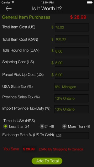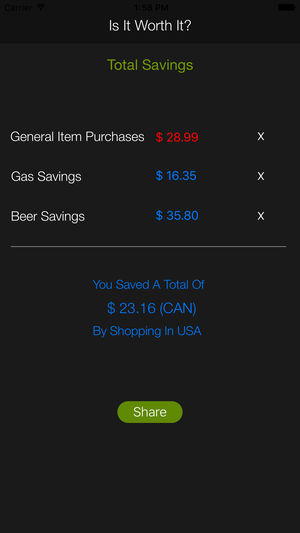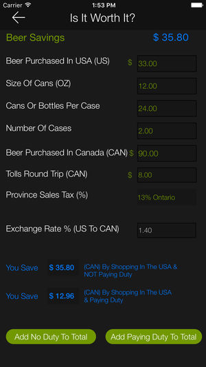 Is It Worth It? App helps people in Canada and USA determine where a specific item is cheaper to purchase. The app looks at all aspects of purchasing items on either side of the border and calculates your total savings and where it is cheaper to purchase it. It's very user friendly with pre saved da…