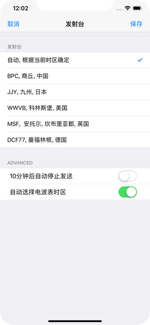 电波表对时可让你随时随地校准电波表时间,无需再关心是否能够收到长波授时台信号。只需开大音量,点击“开始发送”,并将手表置于手动接收状态放到iPhone/iPad扬声器附近,等待同步完成即可。 电波表对时功能: - 覆盖全球主流授时台信号: * 美国 WWVB * 日本 JJY * 中国 BPC * 英国 MSF * 德国 DCF77 - 可通过NTP取得准确时间。 * 在中国使用不支持BPC的电波钟时,请手动选择JJY发射台。 * 在英国使用不支持MSF的电波钟时,请手动选择DCF77发射台。 * 如果使用只支持某个时区或发射台的电波钟,请在本应用设置界面中手动选择电…