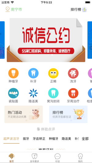 【大笨象用户端】 大笨象平台聚集众多优质诊所、医院,为顾客提供免费或优惠的看牙体验项目和透明的医疗信息,帮助顾客找到身边优质的牙医,同时让人人享有平等的口腔就医机会。 1、顾客可通过免费、优惠看牙项目体验平台牙医的优质服务和技术。 2、真实消费数据公开透明展示,让顾客诊前就对就医环境、价格、材料、服务人数,评价等医疗信息一目了然。 3、顾客体验后留下的真实点评为其他人提供参考。