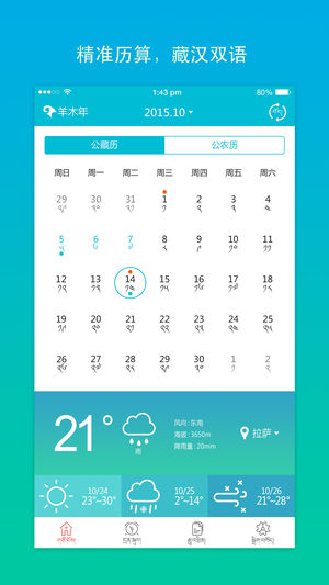 “智慧藏历”是一款将传统藏历与移动互联网平台结合的产品,以藏历版块为基础,提供便捷详实的藏历信息的前提下,分阶段增加气象版块、提醒版块、资讯版块三个模块的内容。人们不仅能方便地从移动端获取藏历信息、天气信息,同时系统还能自动提醒用户注意一些关键信息,例如藏族节日的忌禁提醒、最新藏医药健康养生资讯提醒等,另外用户通过资讯版块还能轻易地了解到藏医药养生、宗教佛语、节庆日信息、视屏资料、最新新闻等相关信息. 产品亮点: 1) 藏汉双语:全软件随时双语切换,吸纳更多的用户群体,促进文化交融,更为部门用户群体解决语言障碍。 2) “公藏历”、“公农历”实时切换:首次实现“公历、藏历、农历”三历结合,实时…