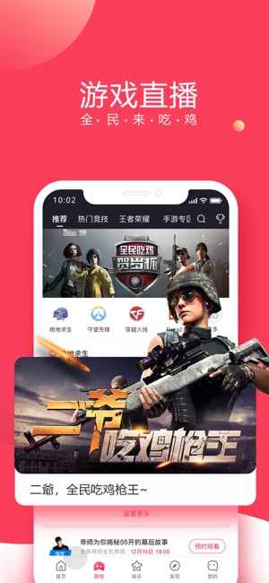 全民直播—真正尊重观众和主播的全民直播平台,做年轻人爱看的全民直播平台。 【游戏赛事】聚合了绝地求生、LOL英雄联盟、DOTA2、DNF、炉石传说、守望先锋、单机主机游戏等各大游戏赛事直播,全程直播LPL,MSI等热门电竞赛事,精彩纷呈全民赛事直播 。 【超强明星主播阵容】小智,隔壁老王,小漠,帝师等全民直播明星精彩演绎 【绝地求生直播】全民吃鸡精英SOLO赛热力开战,“MDY”和“Loading”等职业战队特邀参与 【王者荣耀直播】聚集众多王者荣耀王者玩家进行直播,看他们吊打小学生。 【全民游戏娱乐直播】全天24小时不间断真人大神,游戏直播,娱乐直播都不错过;穿越火线、球球大作战、狼人杀…